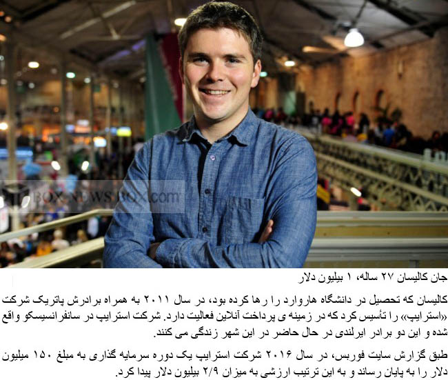 Harvard dropout Collison co-founded Stripe, an online payment company, with his brother Patrick in 2011. The Irish-born brothers now live in San Francisco, where the company is based.
