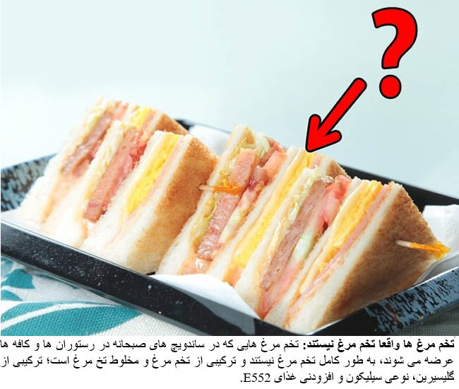 The egg that sometimes features as an ingredient in breakfast meals in fast food chains contains both real egg and a “premium egg mixture”: a mixture of glycerine, dimethylpolysiloxane (a form of silicone), and the food additive E552. Better to just cook your own eggs at home.
