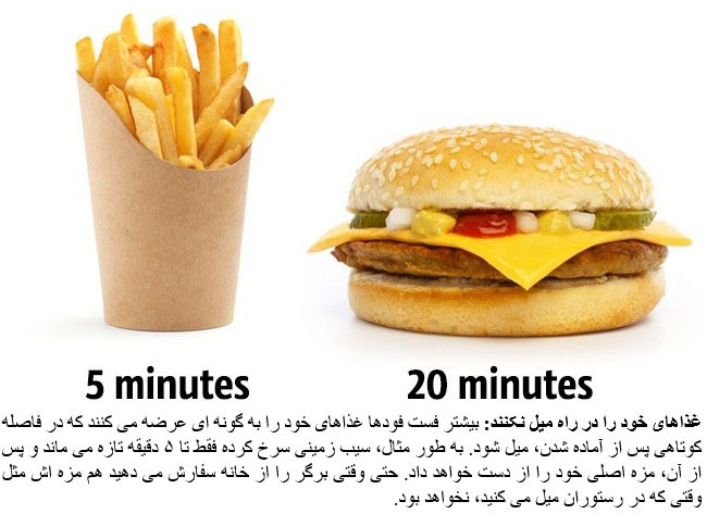 Most meals served in fast food restaurants are meant to be eaten in a very short period after preparation. French fries, for example, stay fresh for just 5 minutes, and after that they begin to lose their taste. By the time you’ve got home with your burger, it won’t taste as good.