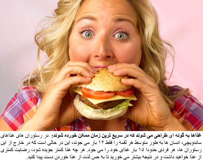 In a fast food restaurant, you swallow a piece of food after chewing it 12 times on average. Outside the restaurant, you generally chew things 15 times. The less we chew food, the less satisfied we are, and so we eat more.
