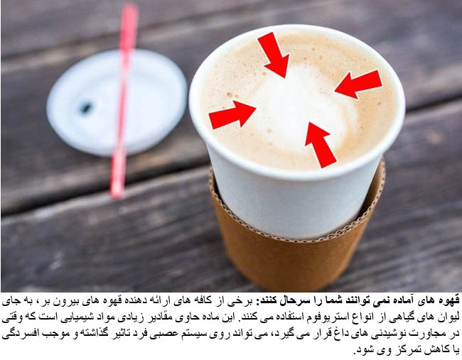 Some chains provide styrofoam cups rather than paper ones for their coffee. This contains a chemical that, when mixed together in hot conditions, can have an effect on the nervous system, causing depression and reducing concentration.