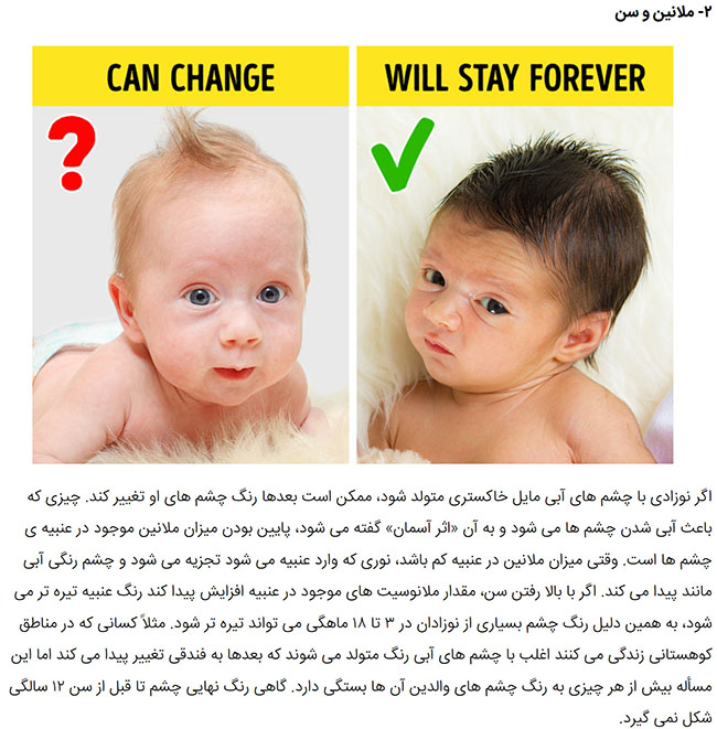 If a baby was born with greyish blue eyes you might be surprised later. The secret of blue eyes, which is also called “the sky effect,” is in the low content of melanin in irises that disperses light and reveals an even brighter, blue-like color. The eye color of many babies at the age of 3-18 months can become darker if the quantity of melanocytes in their irises becomes bigger. For example, people who live in mountainous regions are often born with blue eyes that transform into hazel eyes later but it mostly depends on their parents’ eye color. Sometimes, the final eye color isn’t established until the age of 12.