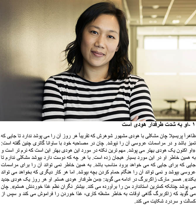 1. She’s “pro-hoodie. ”Chan said she has no problem with the trademark clothing item her husband dons nearly every day. “He has graduated to a nicer hoodie. The main quality about this hoodie that’s nicer is that it’s softer, so he’s really excited about that,” she told Savannah. “I’m happy with whatever he wants to wear, as long as it’s appropriate for where we’re going. So he can’t wear it to weddings. And he can’t wear it to baby showers. But he can do whatever else he wants.”
