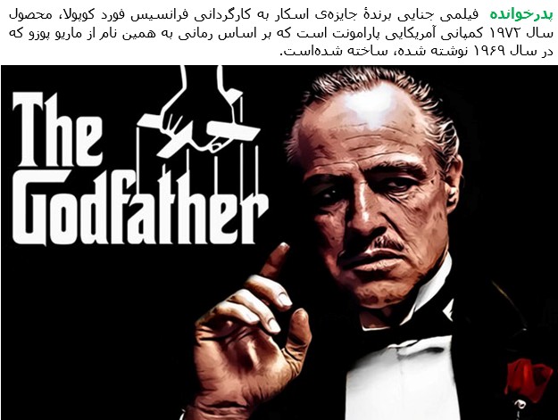The Godfather is a 1972 American crime film directed by Francis Ford Coppola and produced by Albert S. Ruddy from a screenplay by Mario Puzo and Coppola. Starring Marlon Brando and Al Pacino as the leaders of the fictional Corleone New York crime family, the story spans the years 1945-55, concentrating on the transformation of Michael Corleone from reluctant family outsider to ruthless Mafia boss while chronicling the family under the patriarch Vito.