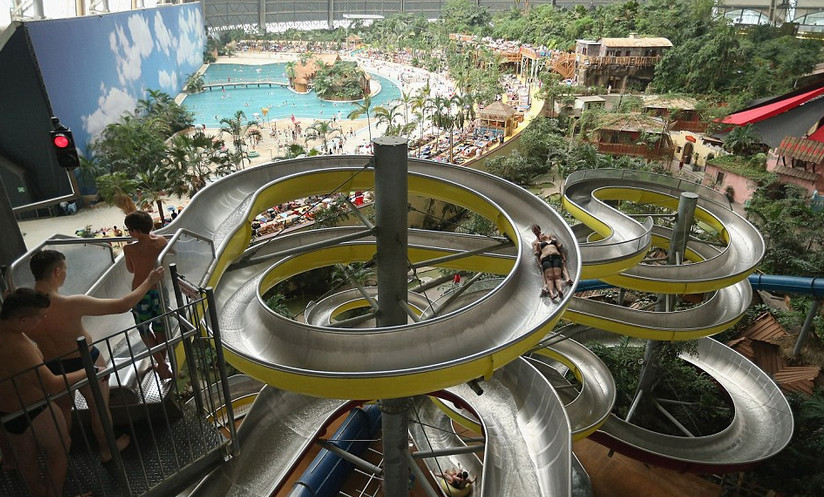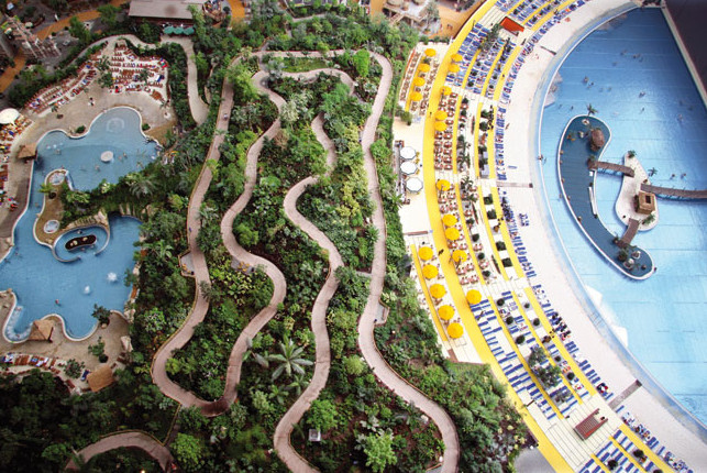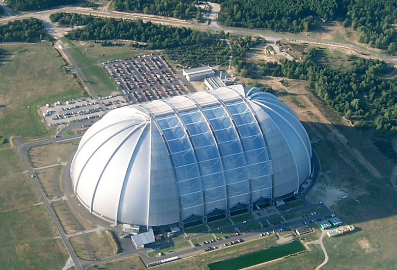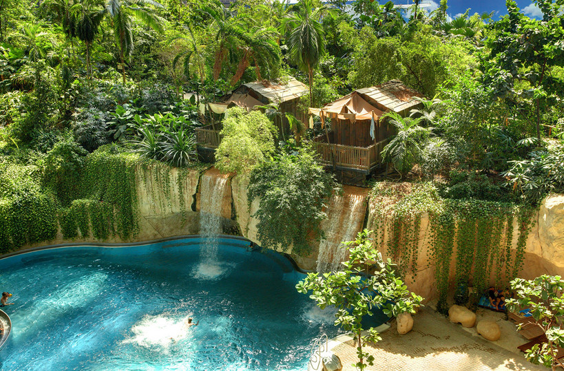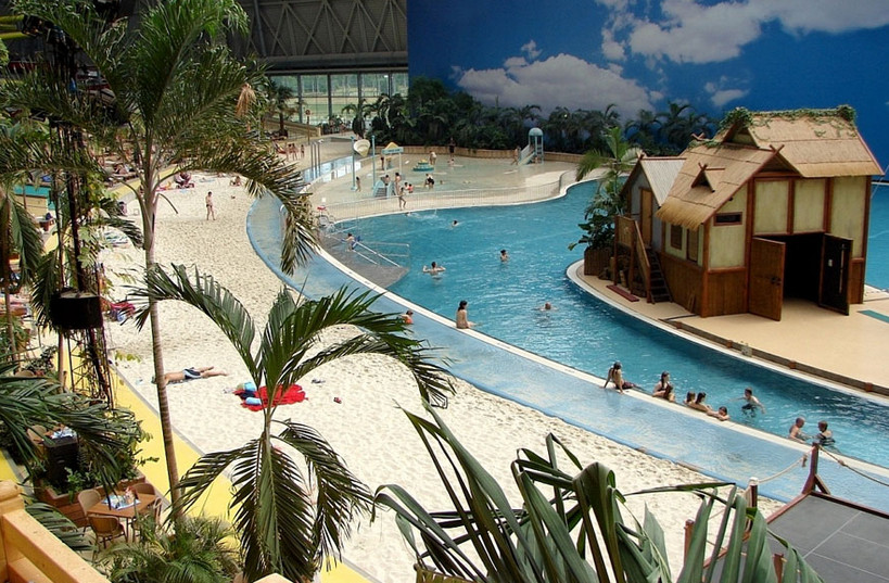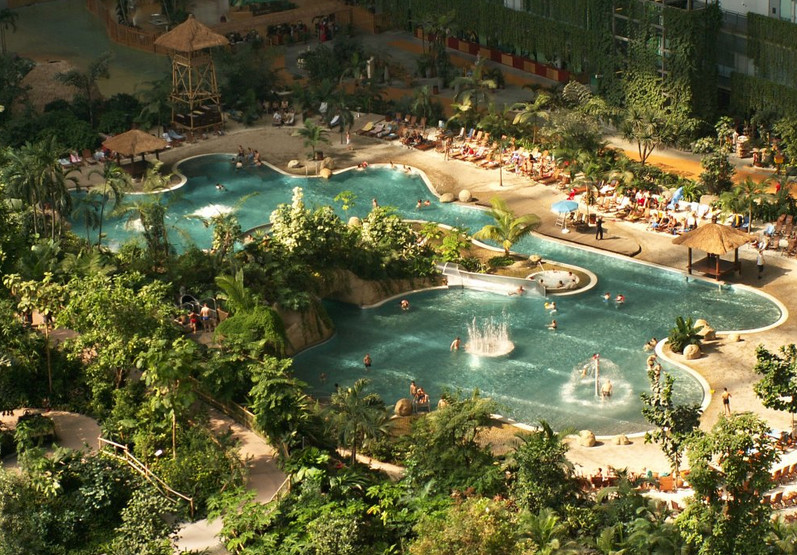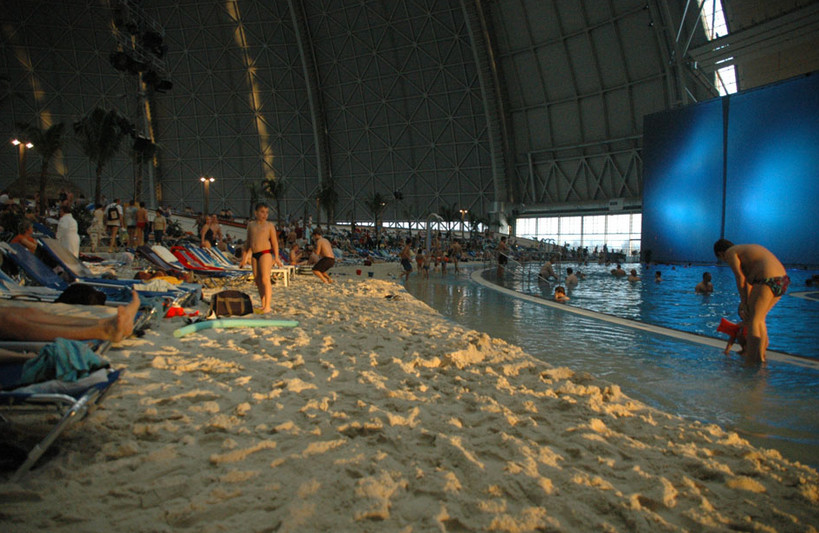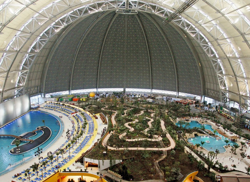 Tropical Islands Resort is a tropical theme park located in the former Brand-Briesen Airfield in Krausnick, in the district of Dahme-Spreewald in Brandenburg, Germany, 50 kilometres from the southern boundary of Berlin.[1] It is housed in the former CargoLifter airship hangar (known as the Aerium), the biggest free-standing hall in the world. The hall belonged to the company CargoLifter until its insolvency in 2002.Tropical Islands has a maximum capacity of 6,000 visitors a day. In its first year of operation it attracted 975,000 visitors, according to figures published by the operators. The annual report of the Tanjong company states that the hall had 155,000 visitors in the business year February 2004 to February 2005, in other words mainly prior to the opening of the theme park. Approximately 500 people work at Tropical Islands.