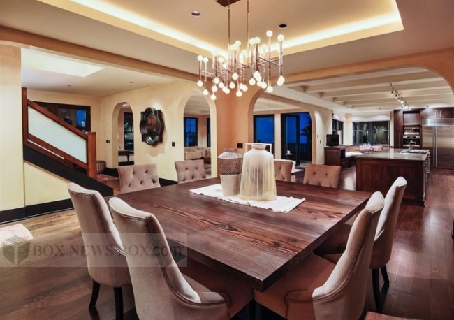 Notable details are many, and include a staircase with a solid frosted glass balustrade, dark blue trim, arched transitions, and a kitchen that slickly balances industrial and the warmth of mid-toned hardwood.