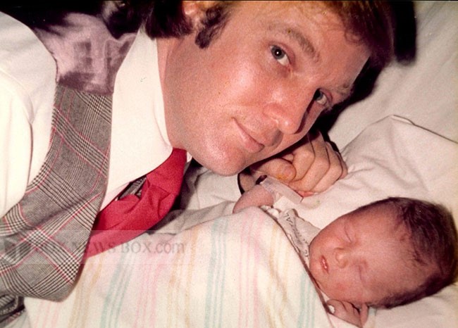The look of love: Donald is clearly smitten with his children, here with his first born Don Jr.