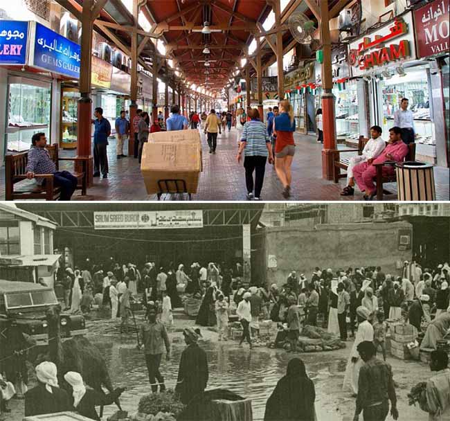 Men gather in al-Naif souq, one of the oldest traditional markets in Dubai. It was partially damaged by a fire in 2008, but the wealthy emirate paid to rebuild the souq in 2010