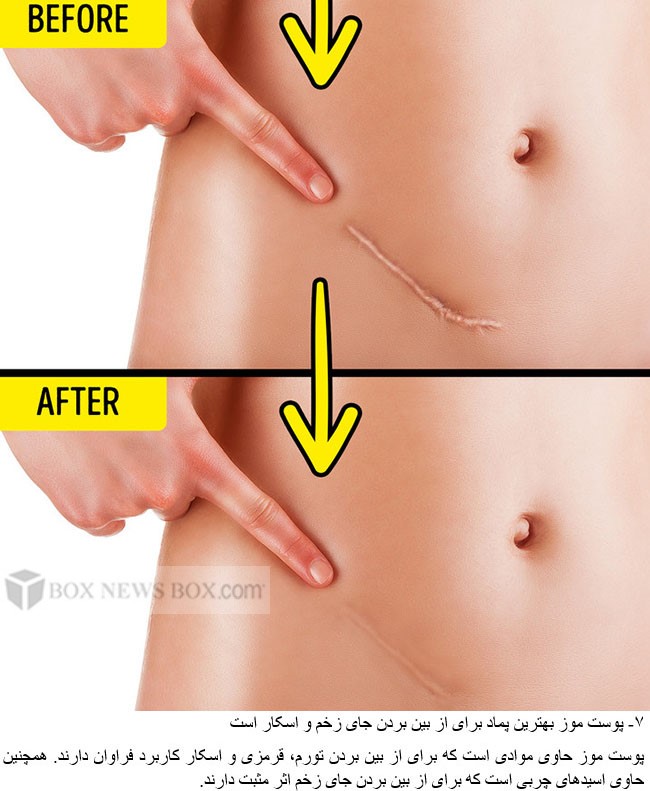 Banana peels have the ability to drastically reduce skin irritation such as swelling, redness, and scarring. They also contain esterified fatty acids which have actually been isolated and incorporated into various lotions that diminish the visibility of scars.