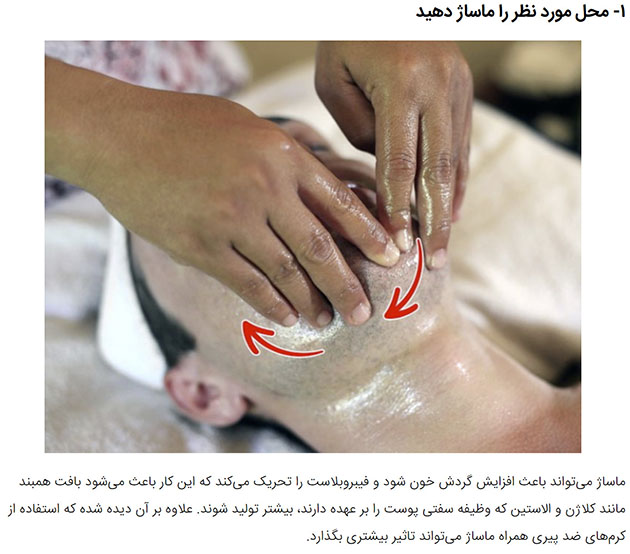 Massage improves blood flow and stimulates fibroblasts, which are cells that help produce connective tissue, like collagen and elastin, which keep skin firm. Moreover, a study showed that using an anti-aging cream, along with massage, makes the effect of it much more visible. Just massage the problem area slowly and in circular motions few times a week, and you will see the results soon.