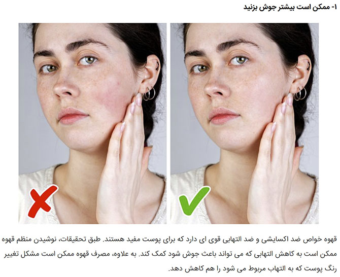 Coffee has antioxidant and powerful anti-inflammatory properties that benefit your skin. Drinking coffee regularly may help reduce the inflammation that can cause facial acne, according to a study. It also may reduce skin hyperpigmentation that has a connection with inflammation.