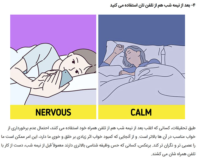 A study revealed that people who use their phones frequently after midnight are more likely to have poorer sleep. And as sleep loss affects our mood greatly, it may make us more nervous and anxious. As for the opposite, people with a higher sense of duty usually stop using their phones before midnight.