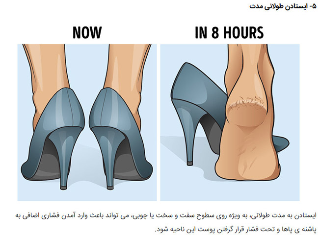Standing for a long period of time, especially on hard or wooden floors, can put additional pressure on your heels and stress on the skin in this area.