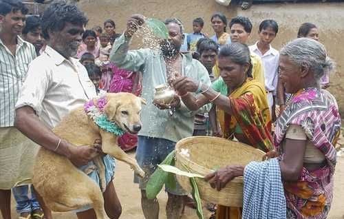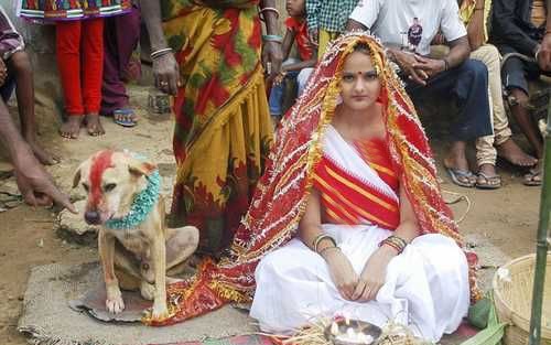 An 18-year-old Indian girl has married a stray dog as part of a tribal ritual designed to ward off an evil spell. Mangli Munda, from a remote village in the eastern Indian state of Jharkhand, wed the canine in a lavish ceremony. The wedding was hastily organised by village elders after a local guru led Mangli’s parents to believe that the teenager possessed ill-luck and that marrying a man would bring destruction to the family and her community. And marrying a dog is the only way to get rid of the bad luck. And amazingly, this is not the first time that a local girl has wed a dog in the village.