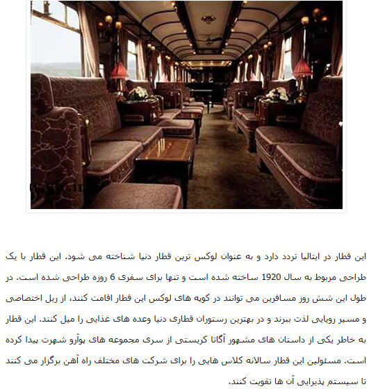 Luxury trains are special trains designed specifically to offer an elegant train ride, and evoke a strong sense of association as in history, heritage and decadence of a leisurely ride. Luxury trains operate in several countries and offer a luxurious and comfortable traveling option to luxury travelers. Whereas some luxury trains like the Orient Express promote tourism in major destinations of an entire continent other trains take guests on a long leisure ride, cutting across state borders but limited to one specific countryThere are trains that get you places, and trains that get you places in style.