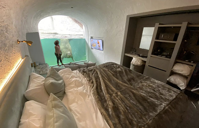 The suite is part of The Land of the Cold in the zoo. It’s been designed in keeping with the Arctic style, in icy shades of silver, blue, and white.