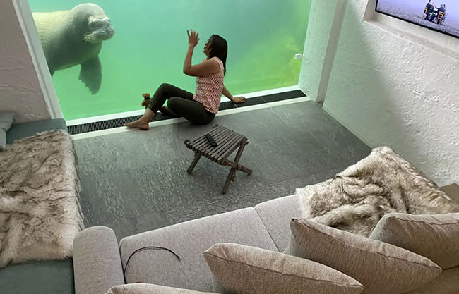 You can stay in an underwater hotel room with a glass wall looking into the walrus tank